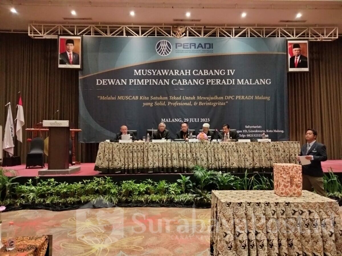MALANGKOTA (SurabayaPost.id) – Musyawarah Cabang (Muscab) IV Dewan Pimpinan Cabang Perhimpunan Advokat Indonesia (DPC PERADI) Malang yang digelar di Hotel Savana, Kota Malang, Jawa Timur, Sabtu (29/07/2023, Incumbent Dian Aminudin, SH, kembali terpilih untuk periode 2023-2028. Terpilih Dian Aminudin setelah unggul tipis dari kandidat Sunarjo, SH., M.Hum. Dari 139 anggota Peradi yang hadir, hanya ada […]
